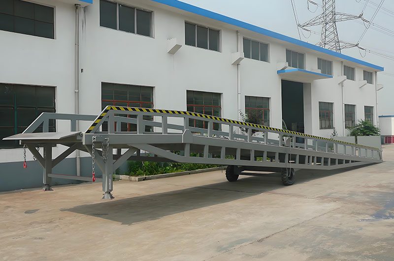 叉車登車橋-移動(dòng)式裝卸平臺(tái)是實(shí)現(xiàn)貨物快速裝卸的專用輔助設(shè)備,調(diào)節(jié)月臺(tái)、建筑物地面與車廂之間的高度差。登車橋前端的可翻轉(zhuǎn)搭接扳在裝卸貨物時(shí)始終緊貼車廂。登車橋的角度調(diào)節(jié)功能使使貨車與建筑物地面之間架起一座橋梁,各種搬運(yùn)車可順利通過(guò)登車橋,在建筑物地面與車廂間運(yùn)送貨物。并且,只需一個(gè)操作工人作業(yè),即可實(shí)現(xiàn)貨物的快速裝卸。它使企業(yè)減少大量勞力,提高工作效率,獲取更大經(jīng)濟(jì)效益.是現(xiàn)代企業(yè)生產(chǎn),提高物料流通速度之不二選擇。