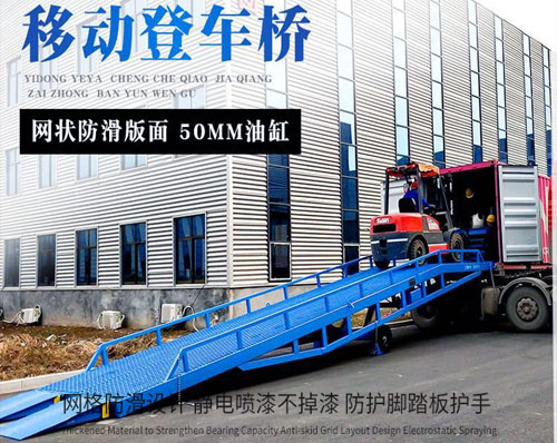 煙臺登車橋-煙臺集裝箱卸貨登車橋-物流登車橋用于無裝卸設(shè)備的貨臺及流動裝卸場所,是與叉車配合使用的貨物輔助設(shè)備。借助該設(shè)備,叉車能直接駛?cè)肫囓噹麅?nèi)部進行批量裝卸作業(yè)。只需單人操作,不需動力電源,即可實物的安全快速裝卸。既可使您減輕勞動強度,又能成倍提高裝卸作業(yè)效率,加快物料流通速度,獲取更大經(jīng)濟效益。
